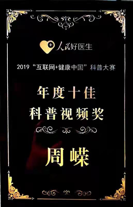 2020年 獲第二屆“互聯(lián)網(wǎng)+健康中國(guó)”科普大賽“科普達(dá)人獎(jiǎng)”