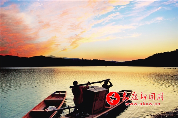 初冬的清晨,瀛湖風(fēng)姿綽約、曼妙無比。起初湖水像是受熱不均的沸水,這里一點,那里一塊冒著熱騰騰的青煙,如絲如縷,在水面上輕盈地飄動、游離、撕扯,如慵懶自在的白云,把天空、湖水襯托得更藍。漸漸地,煙嵐越來越濃,越來越多,像化不開的乳汁,最后整個湖面煙波浩渺,小船和遠山若隱若現(xiàn),似人間童話仙境。這樣的山圍繞著這樣的水,這樣的水倒映著這樣的山,再加上湖中帆影點點,白鷺行行,小島林立,魚群結(jié)對,有種人在畫中游的感覺。深冬,總會落一兩場雪。那雪,極富層次。山下,素雪輕薄覆蓋;山上銀裝素裹,玉潔冰清。湖水則咕嘟咕嘟冒著熱氣,白綠相配,分外醒目,似丹青妙手繪制的山水畫,又似巧手繡娘精繡的刺繡,美輪美奐,惹人愛憐。