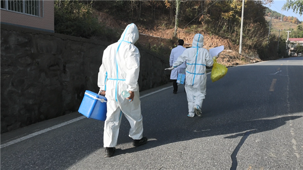每天,穿著厚厚的防護(hù)服,背著重重的防疫箱,幾十里路走下來,常常都是汗流浹背、氣喘吁吁,那種累真的是想努力也使不上勁,入戶檢測完一戶,稍緩上幾十秒,便繼續(xù)前行至下一戶?!案杏X經(jīng)常都是累的忙得吃不上一口飯、喝不到一口水。上山采核酸時(shí)常錯(cuò)過飯點(diǎn),一直要撐到下午4、5點(diǎn)鐘。有時(shí)候一身防護(hù)服一穿就是一整天,就是怕吃飯耽擱時(shí)間,因?yàn)槲覀儽仨氀杆贉?zhǔn)確有序采集完當(dāng)天的任務(wù),其實(shí),就是在和時(shí)間賽跑。但很多時(shí)候一聲‘謝謝、辛苦了’都頓時(shí)讓我們感覺所有付出都是值得的。”