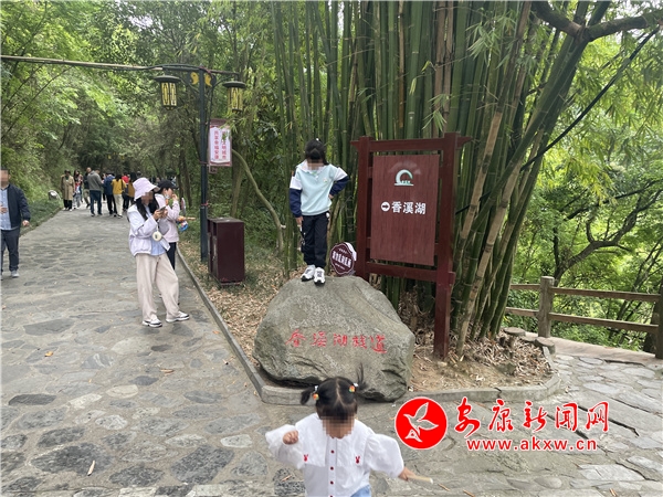 “樓閣云中建,竹木藏山巔。”“五一”期間,風(fēng)景優(yōu)美、距離城區(qū)較近的香溪洞風(fēng)景區(qū)也迎來了“游客潮”。在眾多自覺遵守文明出行規(guī)則的游客中,一孩童隨意踩踏在景觀石頭上,和溫馨提示牌上的“愛護(hù)環(huán)境,文明出行”形成鮮明對(duì)比。