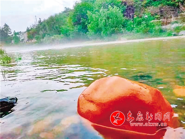 富家河以盛產(chǎn)黃蠟石而聞名,溯溪而上,積水成潭,故有了黃石灘之說(shuō)。辛丑仲夏,駐村工作的使然,便和黃石灘有了初次接觸。多雨的季節(jié),多霧的節(jié)奏,雨止霧起,氤氳云煙,漲水淹沒了過水橋,半拱在潺潺溪水中只剩下一星點(diǎn)月牙兒,微風(fēng)吹來(lái),蕩起一串串漣漪,擴(kuò)散到岸邊,紫信吐芳、綠竹搖曳、蝴蝶飛舞、蟬羽嘀鳴,散落在泥土中,黃蠟石顯得特別突?!蚪^色,宛如仙境一般。