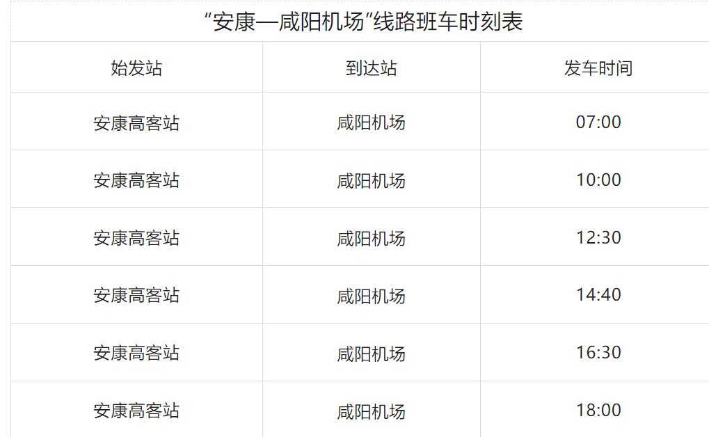 明日起,“安康—咸陽(yáng)機(jī)場(chǎng)”客運(yùn)線路發(fā)車(chē)時(shí)間調(diào)整