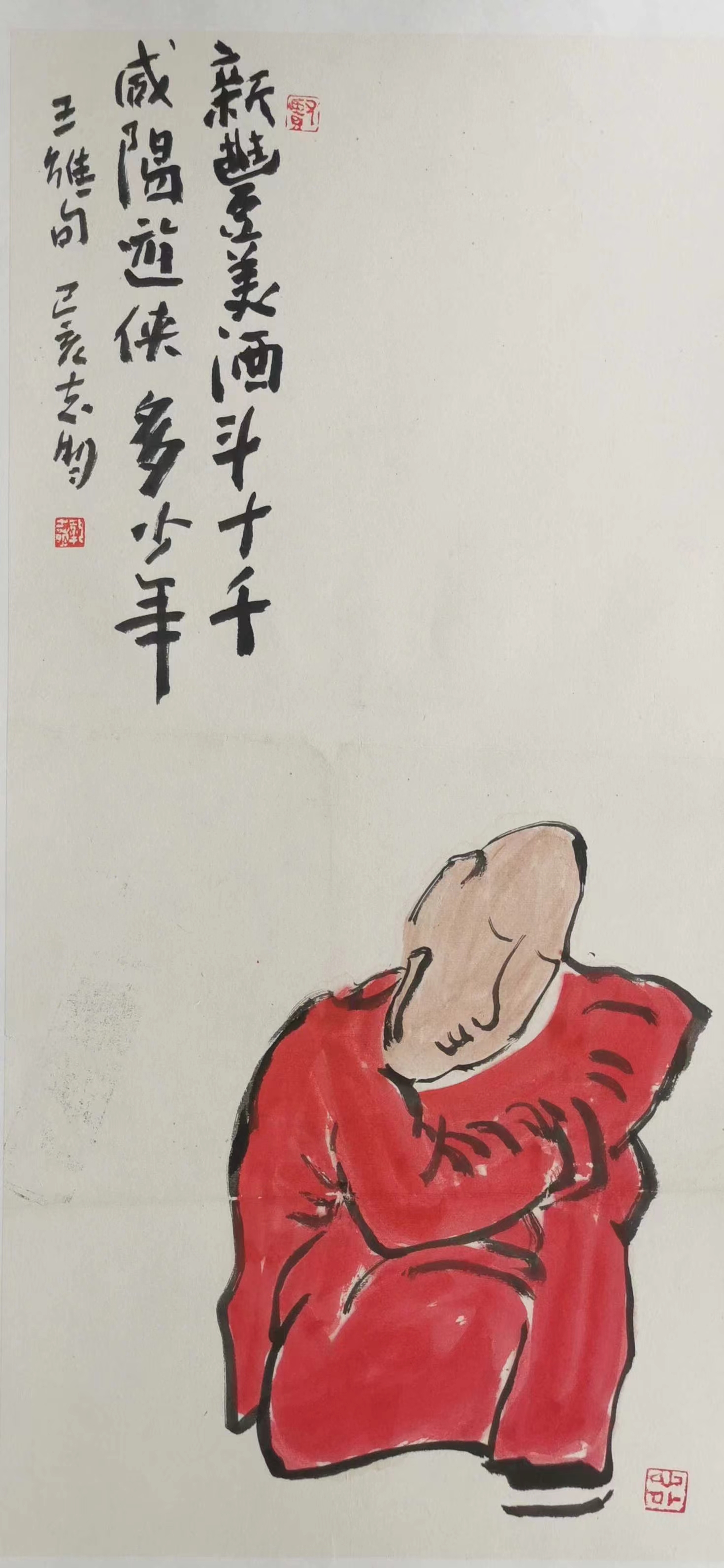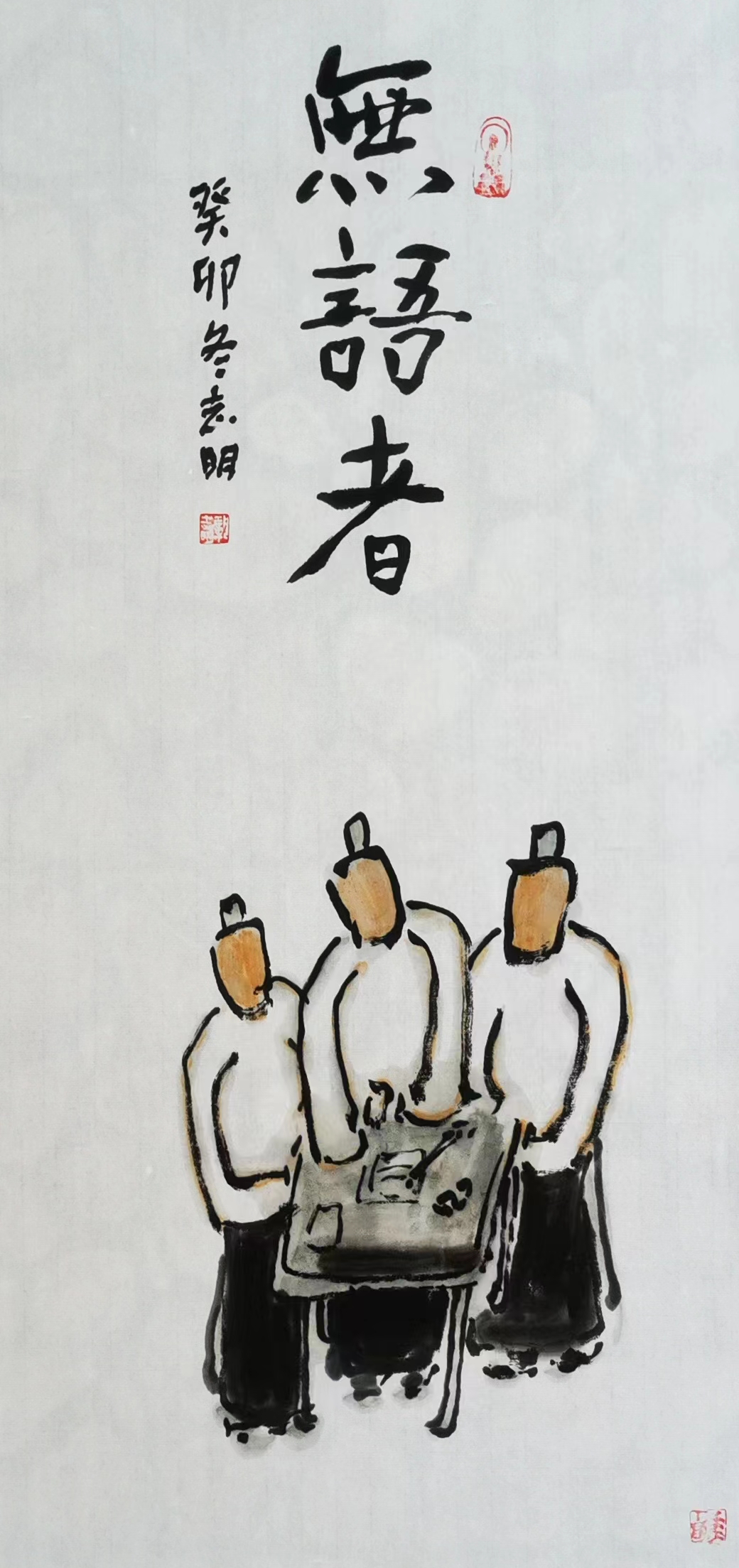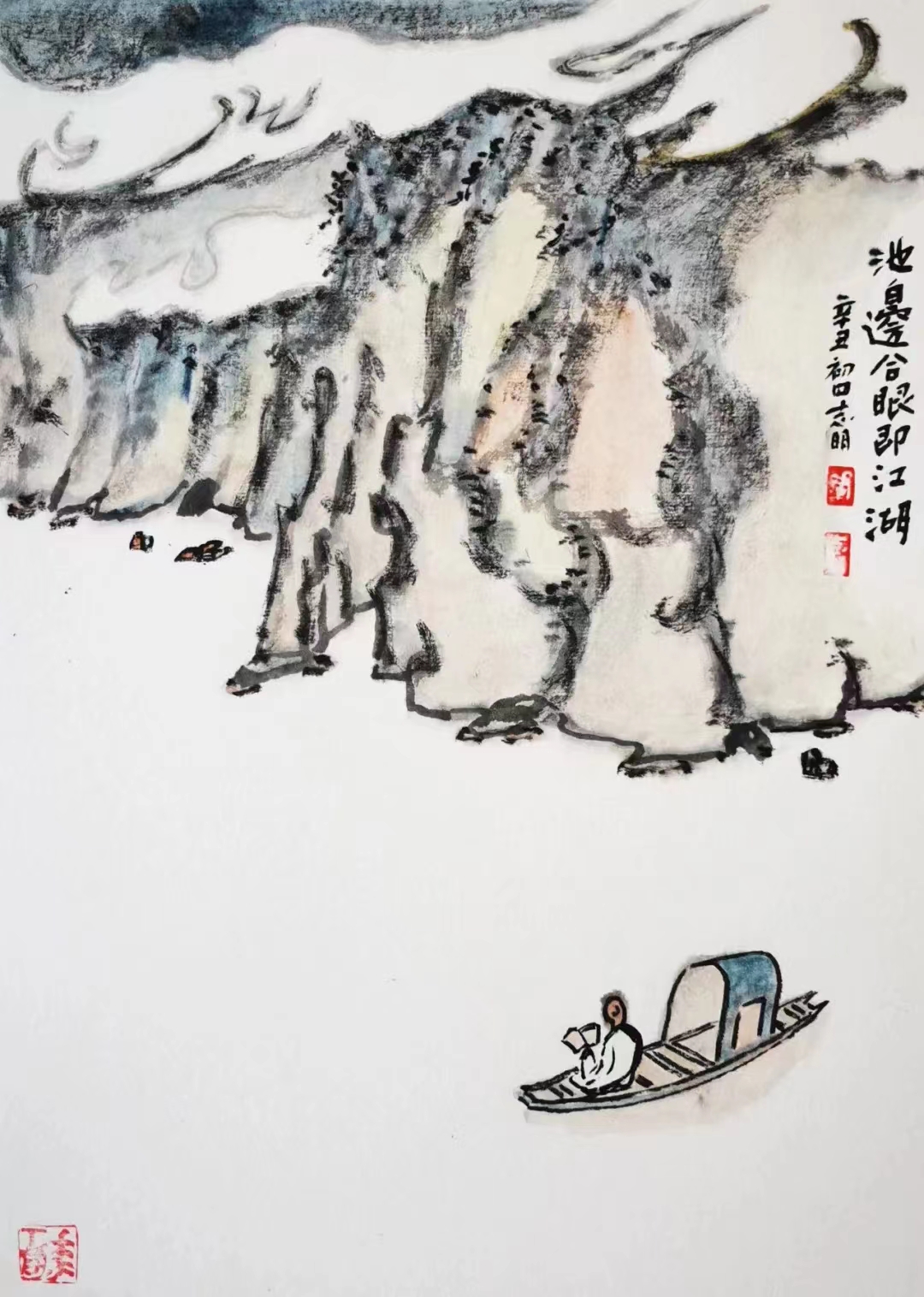 記得那一年的端午節(jié),鞏志明發(fā)來短信,是他寫的一首詩:綠粽黃酒聚江邊,白帆紅燭祭屈原。三千清淚流不得,九萬渾念飄上天。誰有郁悶誰散淡,何謂圓滑何忠奸。十丈風(fēng)塵古今在,談笑真?zhèn)位聼煛?017年,我遷新居,鞏老師為我寄來小品畫《福到眼前》,我很喜歡,并懸掛至新居玄關(guān)。這些年,鞏志明老師常做影展畫展策劃及影評(píng)講座,自已也臨池不輟,水墨丹青,寄情抒懷,他的文人小品有思想性、有創(chuàng)造性。雖畫的是松風(fēng)明月,小舟流水或遠(yuǎn)古人物,但都寄托了他當(dāng)下的心境,以消塊壘。誠如有人評(píng)論他為“吾師真文人,畫亦真性情!”他不僅只是身居畫室的怡情文人,他亦是心憂天下的豪俠。面對(duì)世間不平事,他也是激揚(yáng)文字,揮斥方遒!在功利的當(dāng)下,鞏志明尤其顯得難能可貴!?