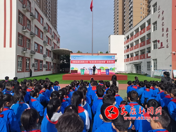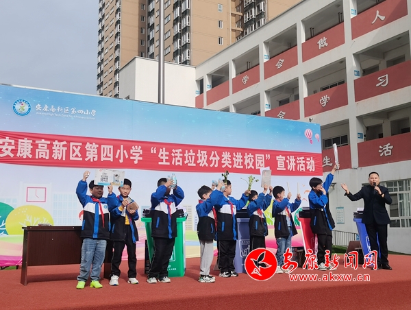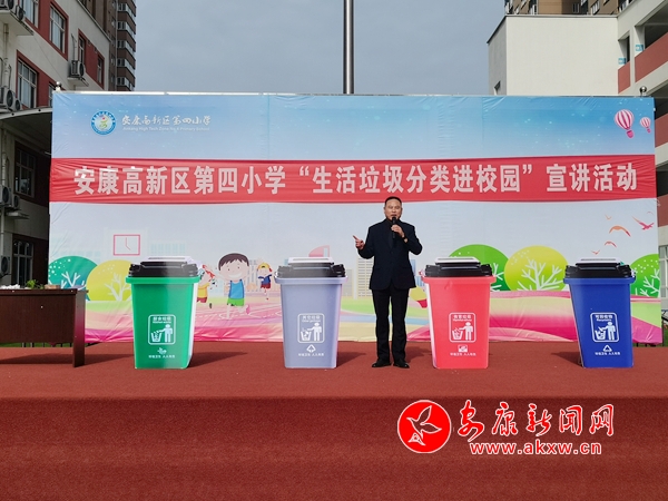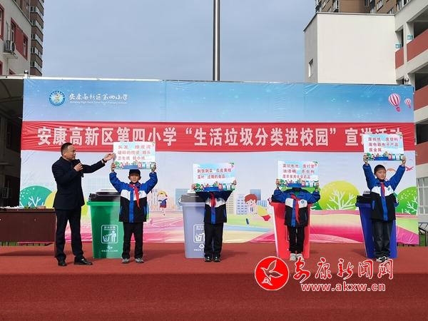 本網(wǎng)訊(通訊員 王宗濤)“同學(xué)們,我們是環(huán)境保護小天使,我們要讓山更青,水更綠,天更藍,我們生活的家園更美麗!我們應(yīng)該養(yǎng)成垃圾分類的好習(xí)慣。”4月9日上午,春陽燦爛的安康高新區(qū)第四小學(xué)的操場上,生活垃圾分類“進校園”宣講活動火熱進行中。