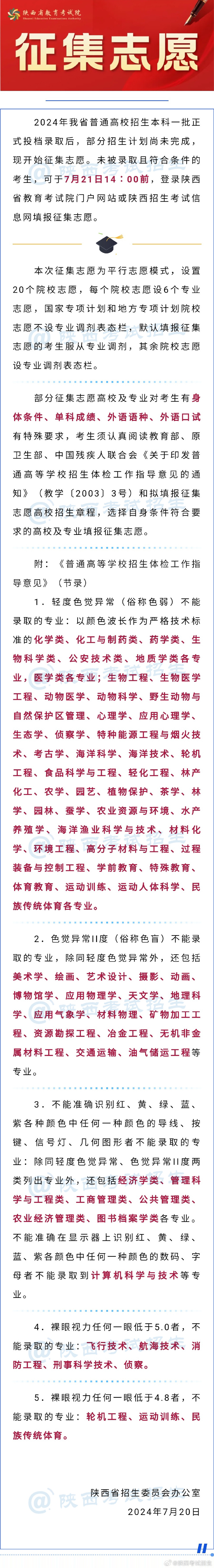 原標題:2024年陜西省普通高校招生本科一批錄取征集志愿