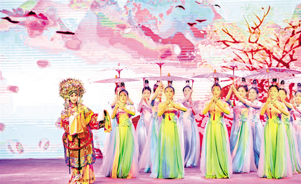 巡演活動現場,演員表演漢劇歌伴舞《大美安康》。楊寧 攝?