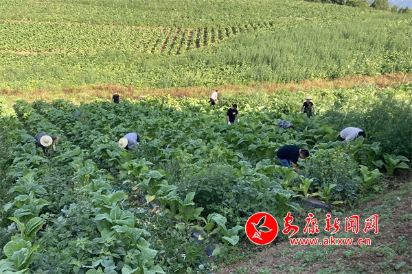 “我給村里的種煙大戶工作好幾年了,年年這時節(jié)都忙得很,早上六點多就得到煙地里忙活,現(xiàn)在一天能拿到100元的勞務(wù)報酬?!贝迕裣蜷L義說道。