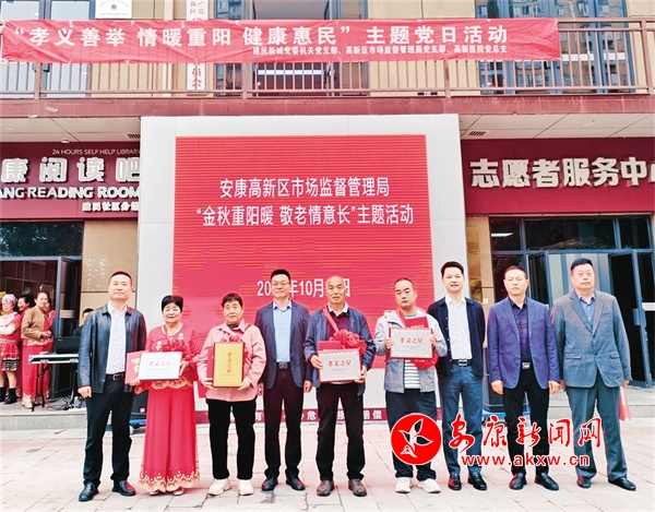 本網(wǎng)訊(通訊員 汪章飛)為營造向上向善的社會文明風(fēng)尚,10月11日,高新區(qū)汪槽村聯(lián)合包聯(lián)單位高新區(qū)市場監(jiān)管局、高新醫(yī)院、陜西萊安客商貿(mào)有限公司舉行“孝義善舉·情暖重陽”暨“孝義之星”“孝義之家”授牌活動。