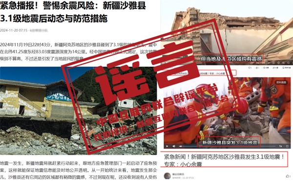 辟謠:新疆阿克蘇地區(qū)沙雅縣發(fā)生3.1級地震,這些謠言需警惕
