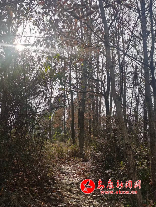 自彎彎樹往上再走一陣兒,便到了平緩開闊處。這里的林子里大多是松樹,空氣中彌漫著一股清新而獨特的氣息,那是松香的味道。金黃的松針鋪在地上,踩上去軟綿綿的,令人產(chǎn)生無限遐想。一只松鼠正在枝頭啃食松果,見有人走近,“嗖”的一聲跳躍到另一棵樹上,松果也隨之掉落,彈蹦著滾出老遠(yuǎn)。樹旁的寒莓交織如網(wǎng),下面零星地生長著半枯的毛蕨,艷麗的火棘十分搶眼,一串串結(jié)滿枝頭,遠(yuǎn)遠(yuǎn)望去,就像個個待掛的大紅燈籠。一群群麻雀兒飛來飛去,呼朋引伴,嘰嘰喳喳,暢享著冬日陽光下的溫暖。我們有說有笑,沿著緩緩地小路徜徉,前行至又一道山梁。只見這里樺櫟高大,松柏森森,化香粗壯,青桐筆挺,猶如將軍列陣,威風(fēng)凜凜,又似衛(wèi)兵站隊,夾道歡迎。在這幽深的林子里,有株柏樹傾而未倒,長過小路的上方,無數(shù)枝條頑強挺立、狀如綠屏,竟形成一道靚麗的拱門。此時,你當(dāng)停下匆忙的腳步,站在這高崗上放眼山形地貌,觀察四周景象,探尋相互關(guān)聯(lián),洞悉自然規(guī)律。你看,在那迂緩的山腳下,多是權(quán)木叢生藤蔓交織,少有茂密森林參天大樹,而在這土地瘠薄、風(fēng)摧雨折的梁頂上,卻是古木高聳、巨樹林立,一定會覺得彩虹總在風(fēng)雨后,風(fēng)雨成材所必歷。更能體會到只有擇高處立身,于難中求進,無懼風(fēng)吹雨打、千磨萬擊,方能根深葉茂、本固枝榮、堅韌不拔、生機無限。