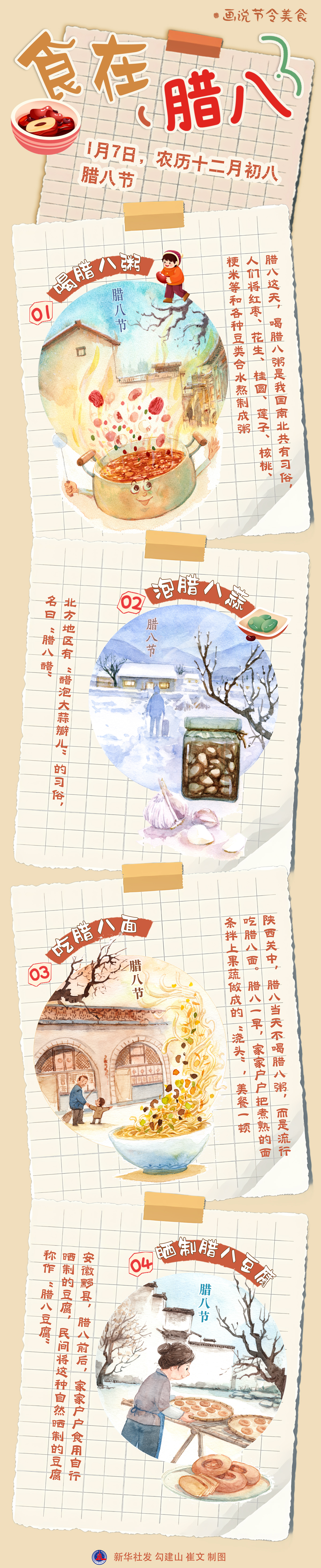 1月7日,農歷十二月初八,是臘八節(jié)。臘八這天,喝臘八粥是我國南北共有習俗,人們將紅棗、花生、桂圓、蓮子、核桃、粳米等和各種豆類合水熬制成粥。