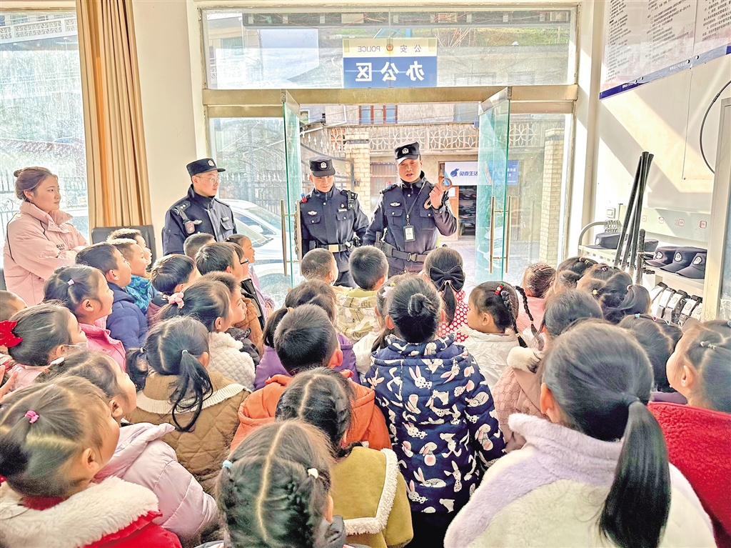 1月8日,紫陽(yáng)縣公安局高橋派出所舉行“萌娃進(jìn)警營(yíng) 警心伴童心”主題110宣傳日警營(yíng)開放活動(dòng),邀請(qǐng)轄區(qū)學(xué)校師生走進(jìn)警營(yíng),感受警營(yíng)文化。陳益謙 攝