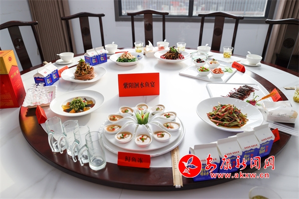 “紫陽洄水魚宴”由8個(gè)涼菜,即:香酥小魚、干煸牛肉、茶香魚皮、鱘魚凍、撈汁七彩花生、酸辣四拼、雙色變蛋、涼拌折耳根;8個(gè)熱菜即:茶香鱘魚、紫蘇魚片、熗鍋鯉魚、釀羊肚菌、辣子雞、臘味三拼、魚頭燉黑豆腐、當(dāng)歸白蘿卜燉羊肉;一個(gè)湯菜:魚丸湯;3道小吃即:魚肉餃子、茶香餅、紫菜魚餅;主食:金銀米飯、酸菜面和飯后水果拼盤組成。據(jù)了解該宴席是繼漢濱區(qū)流水魚宴、石泉縣江魚魚宴之后,全市公開推向市場的第三個(gè)以魚為主料的專業(yè)魚宴。?
