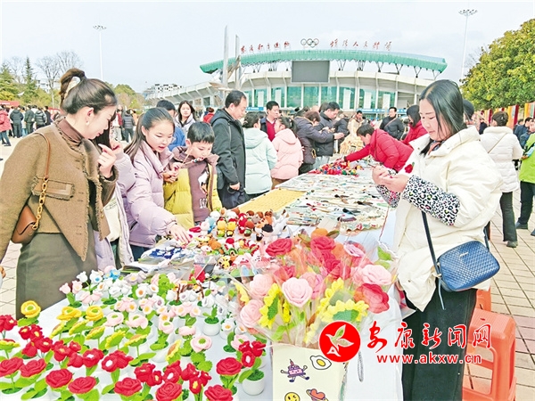 今年春節(jié)期間,胡運翠接到了漢濱區(qū)文化館的電話,邀請她去金州廣場非遺展示區(qū),展示她的手工編織作品,同她的作品一同列入展示的還有花饃、糖畫、手工竹節(jié)人等。她精心準備了許多手工編織品,在金州廣場右側(cè),胡運翠的攤位前圍滿了小朋友,他們被這些栩栩如生的小動物深深吸引,紛紛拉著家長購買。胡運翠一邊熱情地向顧客介紹自己的作品,一邊現(xiàn)場編織,嫻熟的手法引得眾人連連稱贊。