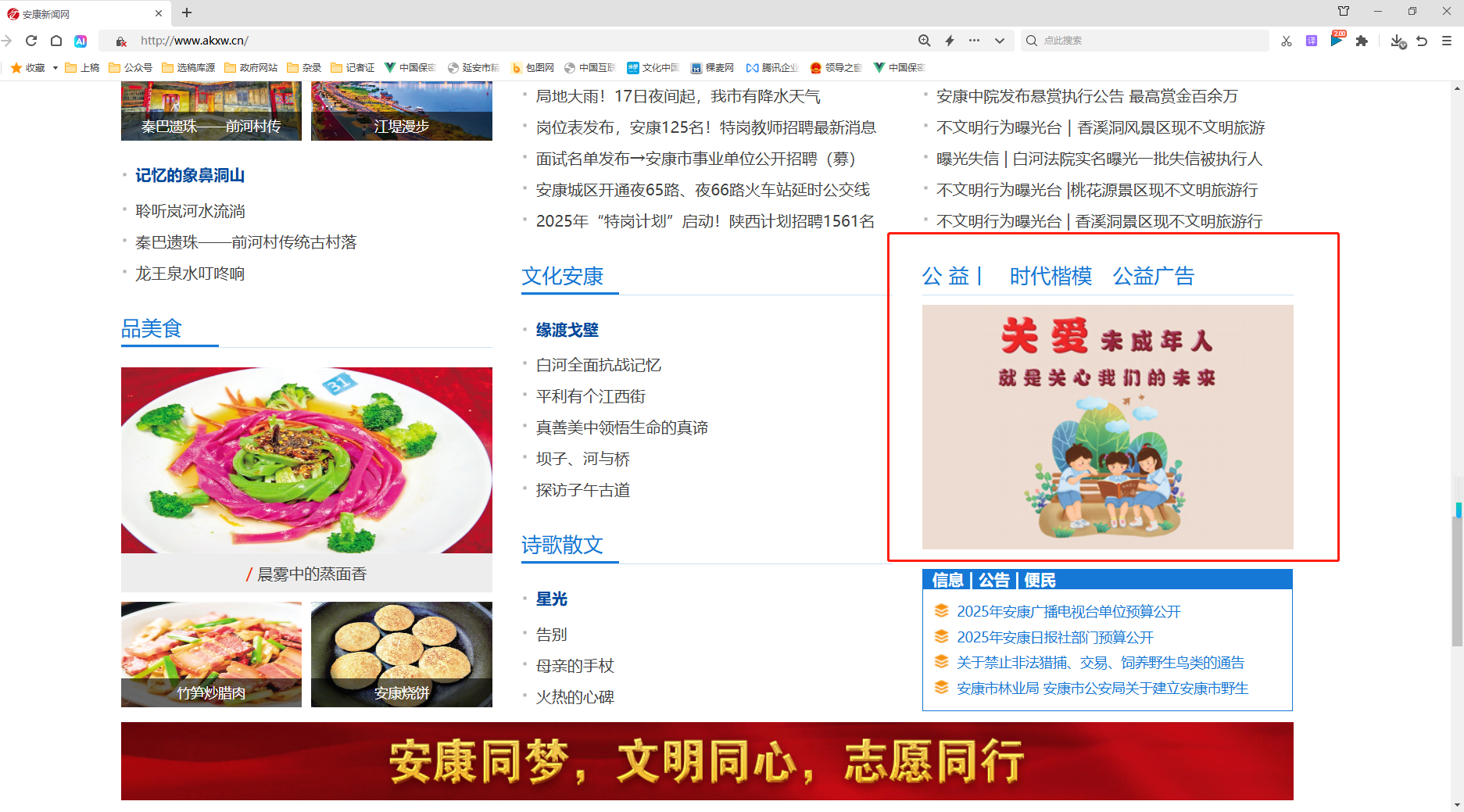 安康新聞網(wǎng)站首頁“公益”模塊