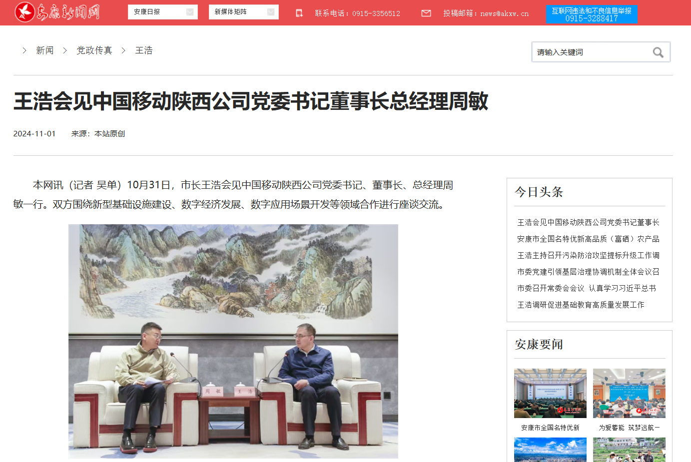 《王浩會(huì)見中國(guó)移動(dòng)陜西公司黨委書記董事長(zhǎng)總經(jīng)理周敏》(2024-11-01發(fā)布)