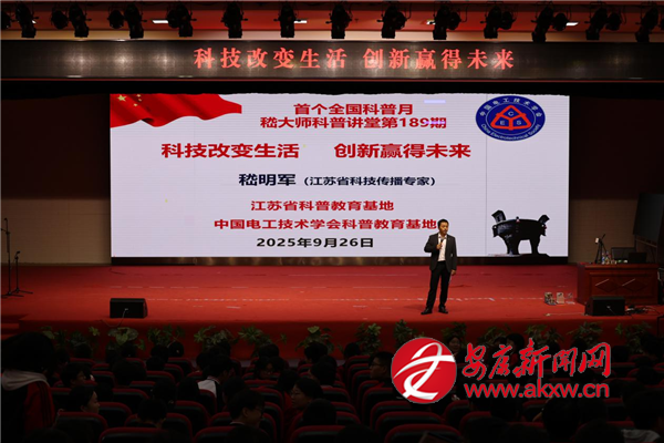 本網(wǎng)訊(通訊員 雷建民)為積極響應(yīng)國家首個(gè)“全國科普月”活動(dòng)號(hào)召,落實(shí)新修訂的《中華人民共和國科學(xué)技術(shù)普及法》精神,營造校園崇尚科學(xué)、鼓勵(lì)創(chuàng)新的良好氛圍,借“組團(tuán)式”幫扶力量,9月26日,紫陽中學(xué)特邀江蘇省科技傳播專家、常州市突出貢獻(xiàn)人才、中國電工技術(shù)學(xué)會(huì)科普教育基地負(fù)責(zé)人嵇明軍教授來校,開展了一場別開生面的科普講座活動(dòng)。