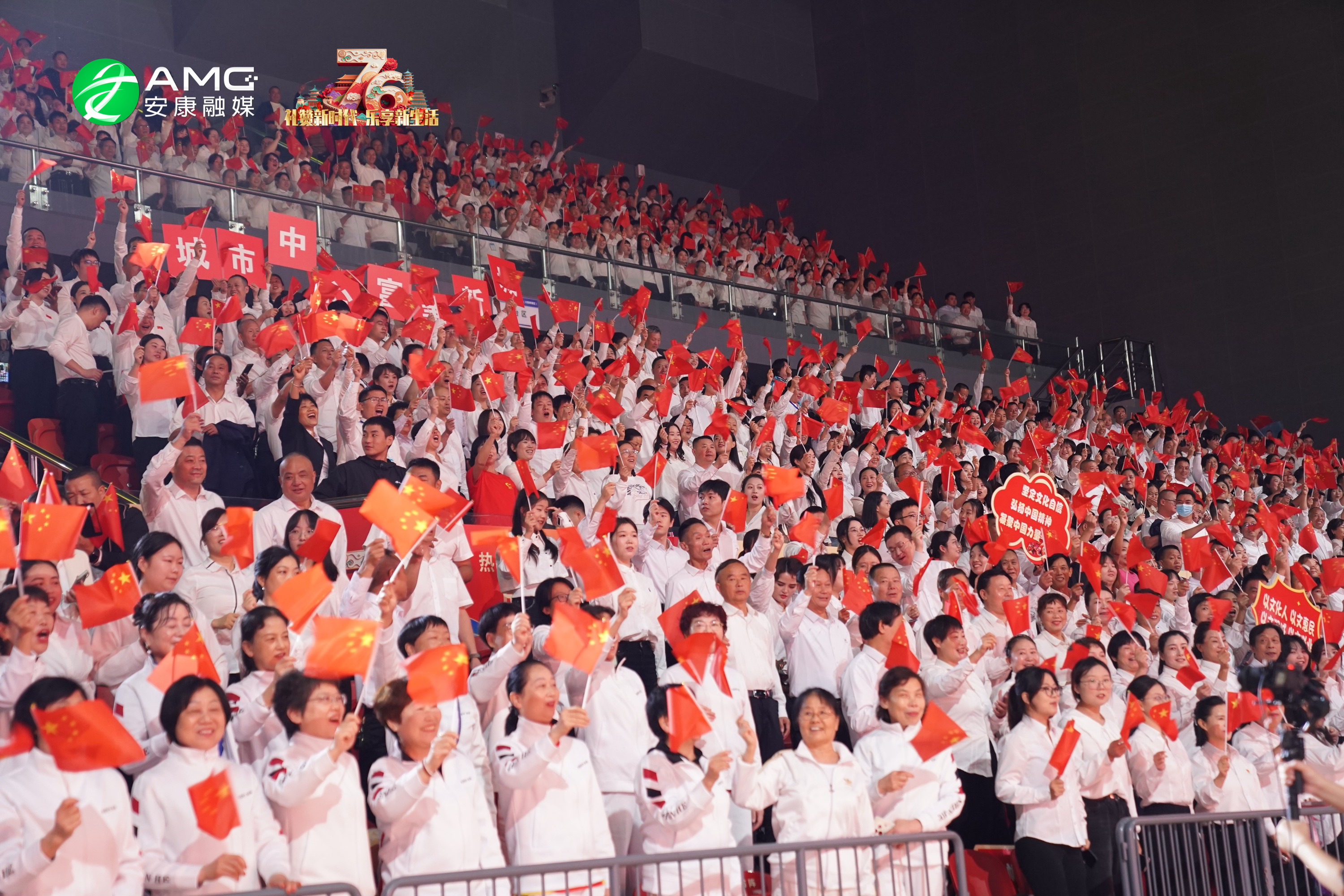 最后,全場(chǎng)人員起立揮舞紅旗,齊聲高唱《歌唱祖國(guó)》,用最真摯的歌聲祝福祖國(guó)繁榮昌盛,祝愿安康的明天更加美好。歌聲震徹場(chǎng)館,將整場(chǎng)活動(dòng)推向高潮。