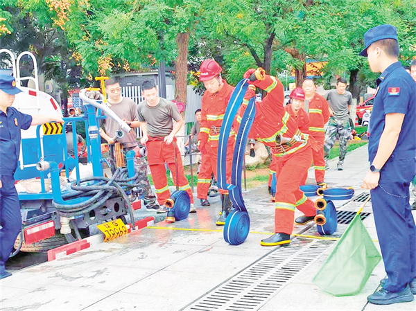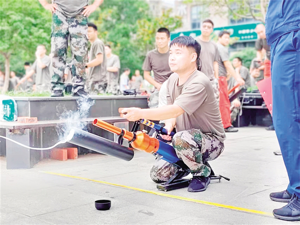 邱凱介紹,該鎮(zhèn)應(yīng)急救援隊由鎮(zhèn)級救援隊、15個村級救援分隊和水上應(yīng)急救援隊組成,共17支隊伍278人?!盀榱诉@次比武,后柳鎮(zhèn)收到通知后就積極籌備。兩個月里,參賽隊員除了到縣消防救援大隊接受專業(yè)培訓(xùn)外,平時也堅持每周訓(xùn)練。”邱凱指著場邊的灑水車說,“這輛灑水車是鎮(zhèn)上自己改造的,不僅成本低,也更適合鎮(zhèn)情實際,五層樓以上的救援也能覆蓋。?