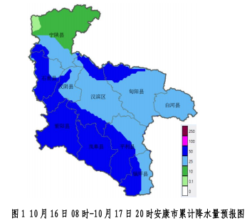 10月16日:陰天轉(zhuǎn)大雨,寧陜、石泉、漢陰、紫陽、嵐皋、漢濱北部、旬陽北部局地暴雨(25~60毫米,局地可達70毫米以上);