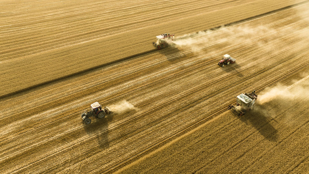 2025年6月4日,在河南省商丘市梁園區(qū)李莊鎮(zhèn)潘堂村志誠種植農民專業(yè)合作社,農機手操作機械在農田作業(yè)(無人機照片)。新華社發(fā)(李恒 攝)