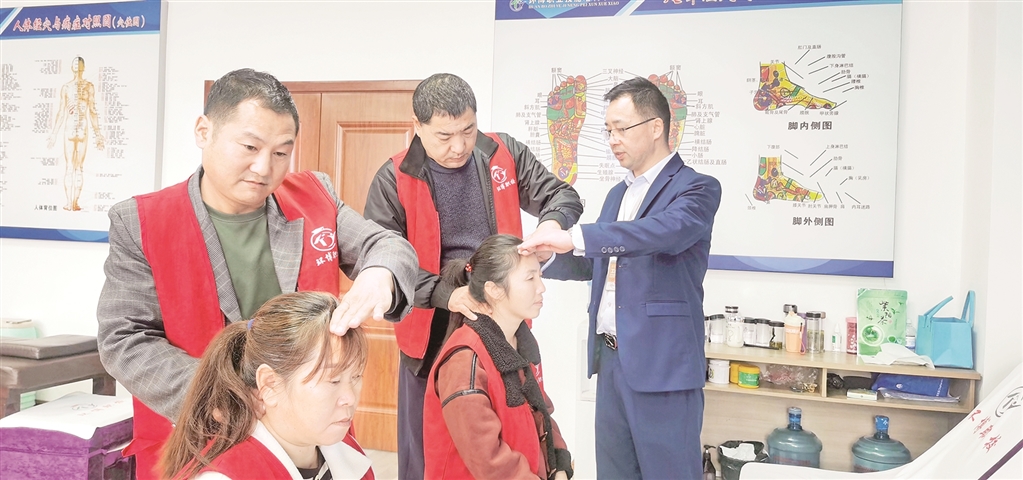 為確保每位參訓(xùn)學(xué)員聽得懂、看得清、學(xué)得會,周元富不厭其煩地將每一套動作分解為通俗易懂的語言,配合緩慢而精準(zhǔn)的示范,反復(fù)講解,直至所有人掌握要領(lǐng)。對于擁有15年從業(yè)經(jīng)驗(yàn)的周元富而言,相比于保健按摩技能傳授,參訓(xùn)學(xué)員的心理建設(shè)需要投入更多心力。許多參訓(xùn)學(xué)員初來時(shí)思想負(fù)擔(dān)重,情緒波動大,既擔(dān)心學(xué)不會技能,更憂慮未來的就業(yè)與收入。面對這些特殊的教學(xué)對象,周元富一度感到棘手。經(jīng)過3年的實(shí)踐摸索,他將豐富的一線經(jīng)驗(yàn)與耐心、熱情相結(jié)合,逐步找到溝通與激勵(lì)的方法,幫助參訓(xùn)學(xué)員卸下包袱,樹立信心,從容面對學(xué)習(xí)與未來的職業(yè)之路。