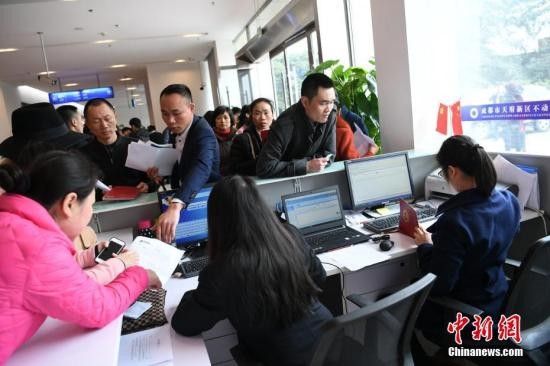 資料圖:成都市天府新區(qū)不動產(chǎn)登記中心購房者正咨詢相關(guān)政策。張浪 攝