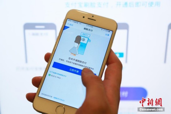 9月19日,刷臉支付需要先在支付寶APP上開通該項(xiàng)服務(wù)。近日,支付寶在杭州一家餐廳首次推出刷臉支付服務(wù),用戶開通該項(xiàng)功能后只需綁定手機(jī)號(hào),通過支付平臺(tái)刷臉即可完成交易,再也無須擔(dān)心付款時(shí)手機(jī)沒電或者忘帶的尷尬。中新社記者 王遠(yuǎn) 攝