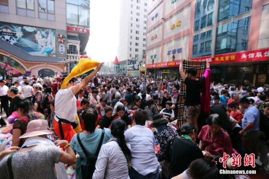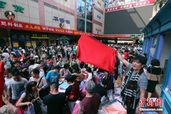 9月15日,幾位來自斯里蘭卡的游客慕名前來天意選購商品。當日,自1992年開業(yè)至今的北京天意市場迎來其在北京西城阜外大街營業(yè)的最后一日,商家趁機“瘋狂甩貨”,大批北京民眾也紛至沓來。這里曾是北京著名的小商品商城,聚集了數(shù)千家商戶。為疏解北京非首都功能,天意商城將于本月16日關門停業(yè)。中新社記者 崔楠 攝JgP安康新聞網(wǎng)