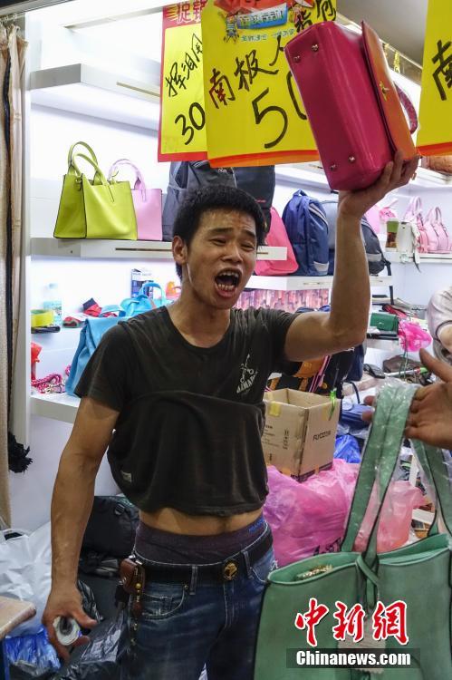 9月15日,一商家舉起商品大聲叫賣。當日,自1992年開業(yè)至今的北京天意市場迎來其在北京西城阜外大街營業(yè)的最后一日,商家趁機“瘋狂甩貨”,大批北京民眾也紛至沓來。這里曾是北京著名的小商品商城,聚集了數(shù)千家商戶。為疏解北京非首都功能,天意商城將于本月16日關門停業(yè)。中新社記者 崔楠 攝JgP安康新聞網(wǎng)