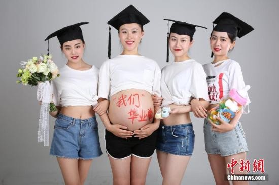 近日,四川一高校的空中乘務(wù)專業(yè)畢業(yè)生潘紅莉拍攝的一組“孕”味十足的大肚畢業(yè)照吸引了眾多人的關(guān)注。(圖為資料圖) 毛成山 攝