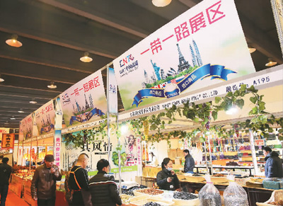 | 2017中國(guó)南通進(jìn)口商品博覽會(huì)現(xiàn)場(chǎng),消費(fèi)者在“一帶一路”展區(qū)查看商品。 |