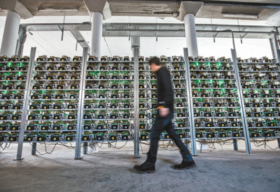 | 1月19日,奧地利伊布斯河畔魏德霍芬附近,一名“礦工”從加密幣“采礦”機(jī)組前經(jīng)過。 |