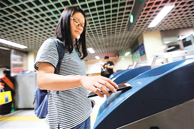 | 隨著中國(guó)在移動(dòng)互聯(lián)網(wǎng)領(lǐng)域的技術(shù)進(jìn)步與應(yīng)用普及,基于手機(jī)的支付方式正在走進(jìn)生活的每個(gè)角落。圖為一位北京市民通過(guò)刷手機(jī)直接進(jìn)站乘坐地鐵。 |