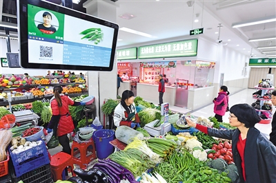 | 安徽省合肥市瑤海區(qū)勝利智能農(nóng)貿(mào)市場(chǎng),每個(gè)攤位都安裝了電子屏,只需掃碼即可實(shí)現(xiàn)移動(dòng)支付,還可在平臺(tái)對(duì)商家進(jìn)行點(diǎn)評(píng)、維權(quán)投訴等。掃碼“滴”聲之后,現(xiàn)實(shí)與虛擬被連接,這種黑白方格組成的“時(shí)代符號(hào)”(二維碼)帶來(lái)了便利、快捷和驚喜。 |