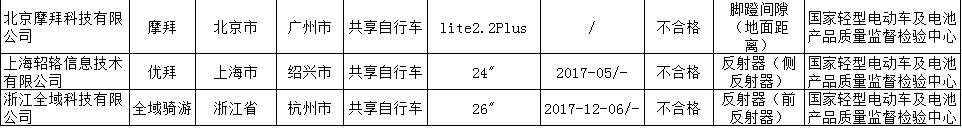 2017年共享自行車產品質量國家監(jiān)督專項抽查不合格產品及其企業(yè)名單(來源:國家質檢總局)eKb安康新聞網