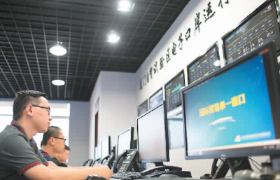 | 圖為工作人員在廈門自貿(mào)試驗區(qū)電子口岸運行監(jiān)控中心監(jiān)測運行數(shù)據(jù)。 |