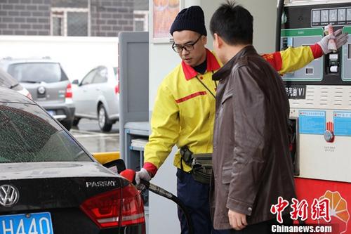 4月12日,哈爾濱市一加油站內(nèi),車主排隊(duì)加油。中新社記者 于琨 攝