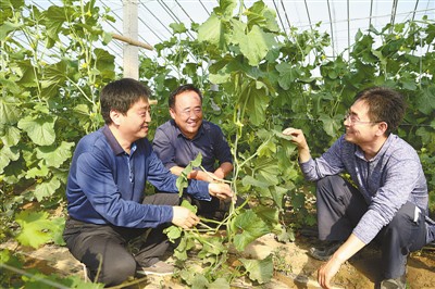 為進一步鞏固和加強基層黨組織建設,打贏脫貧攻堅戰(zhàn),今年以來,山東臨邑縣選派120名優(yōu)秀年輕干部駐村幫扶,實行鄉(xiāng)鎮(zhèn)考勤、村里辦公,建立健全縣、鄉(xiāng)、村三級扶貧網格。駐村干部精準制定扶貧方案,推進基層組織轉化升級,推動社區(qū)(村)脫貧致富。圖為日前,派駐臨盤街道前楊村駐村干部崔磊(右一)在扶貧產業(yè)園了解果蔬種植情況。 3eW安康新聞網