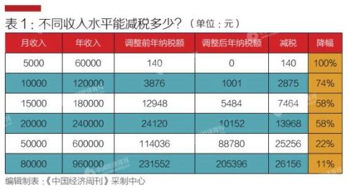 總體而言,月收入5000元以下的納稅人將不需要繳納個稅,稅負降幅為100%,月收入為8萬元的納稅人,年納稅額的降幅超過10%。