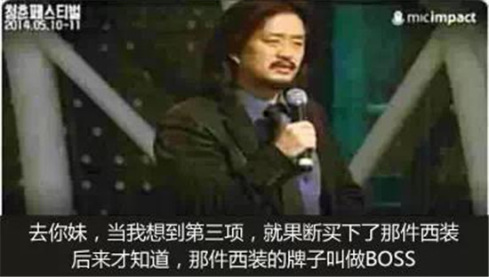 還記得紅遍微博勵(lì)志故事的那個(gè)boss哥嗎?那個(gè)從120萬(wàn)西裝開(kāi)始的億萬(wàn)富翁。boss哥年輕時(shí)背包巴黎游,在街頭看上一家西裝店的西裝,上身一試,就像為他量身定做,簡(jiǎn)直不要太帥。一看價(jià)錢120萬(wàn)韓元,心想這輩子買的衣服加起來(lái)都沒(méi)這貴。但回頭一看鏡子里帥的掉渣小伙,合計(jì)了一番整個(gè)旅行的費(fèi)用,買,買了!后來(lái)知道那個(gè)貴死人的西裝叫BOSS。