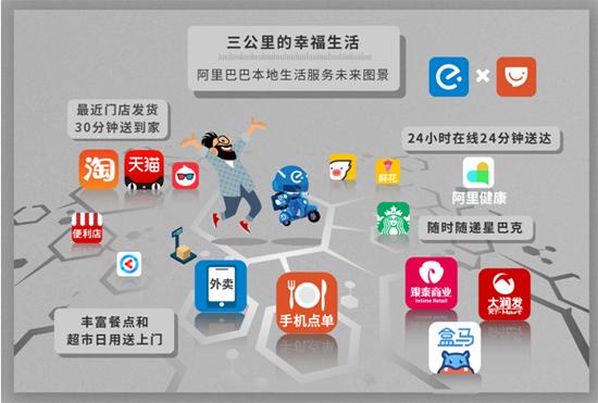 未來(lái),本地生活服務(wù)公司將與阿里生態(tài)內(nèi)原有各個(gè)板塊產(chǎn)生更大的協(xié)同效應(yīng)和化學(xué)反應(yīng)。在新零售、會(huì)員體系、營(yíng)銷、物流、金融等領(lǐng)域,圍繞城市生活,都將產(chǎn)生無(wú)限的想象空間——以每個(gè)人為中心,在3公里半徑內(nèi),到店享受個(gè)性化服務(wù),在家也有豐富餐點(diǎn)和超市日用送上門;在手機(jī)淘寶下單,最近門店發(fā)貨,30分鐘送到家;完備的社區(qū)醫(yī)藥服務(wù)24小時(shí)在線24分鐘送達(dá)……最終,數(shù)字化的本地服務(wù)將延展到人們?nèi)粘I畹姆椒矫婷,惠?億中國(guó)城鎮(zhèn)居民。