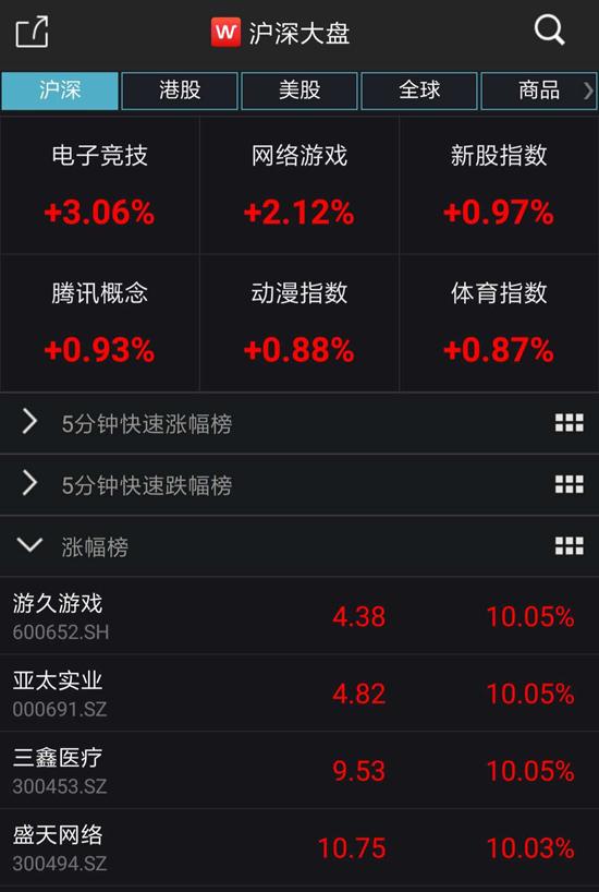 在消息發(fā)出后,游戲板塊集體爆發(fā)。從A股方面來看,截至周五(11月21日)收盤,在大盤整體低迷下跌0.79%的背景下,Wind電子競(jìng)技指數(shù)和網(wǎng)絡(luò)游戲指數(shù)兩大概念板塊逆勢(shì)上攻,截至收盤分別上漲3.06%與2.12%,其中,游久游戲、盛天網(wǎng)絡(luò)、游族網(wǎng)絡(luò)、中青寶等漲停,完美世界上漲超6%,昆侖萬維上漲近3%。