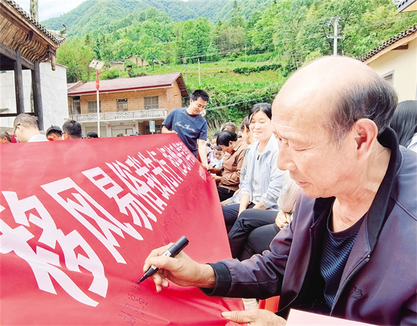 近日,漢濱區(qū)葉坪鎮(zhèn)在慶祝中國(guó)共產(chǎn)黨成立104周年活動(dòng)現(xiàn)場(chǎng),開(kāi)展“移風(fēng)易俗我先行 拒絕升學(xué)宴請(qǐng)風(fēng)”簽名和宣講活動(dòng)。 胡子新 攝
