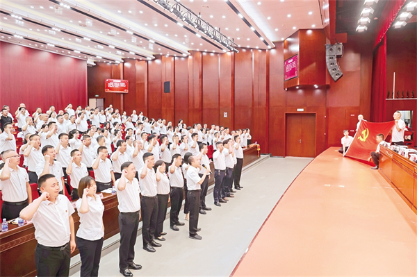 6月29日,漢濱區(qū)農(nóng)業(yè)農(nóng)村局全體黨員重溫入黨誓詞,慶祝中國(guó)共產(chǎn)黨成立104周年。周濬 攝