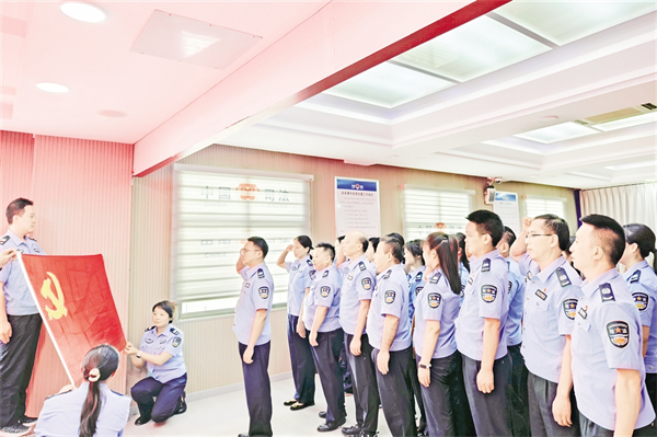 6月26日,紫陽(yáng)縣司法局組織機(jī)關(guān)黨支部黨員、局機(jī)關(guān)及下屬單位干部職工開(kāi)展“重溫入黨誓詞 汲取奮進(jìn)力量”主題黨日活動(dòng)。葉明星 攝