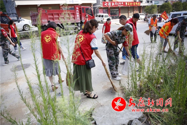 慰問活動結(jié)束后,郭局長和楊總帶領青年志愿者與保潔員們共同開展了清掃社區(qū)活動。