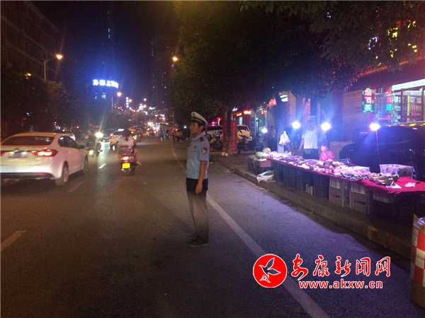 張灘交警中隊夜晚持續(xù)整治南環(huán)東路水果商販