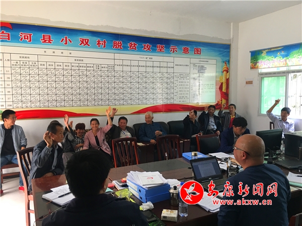 白河冷水小雙村召開貧困戶民主評議,動態(tài)調(diào)整會議。