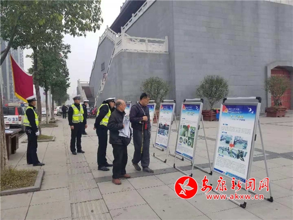 全國交通宣傳日江北交警隊(duì)在西城閣進(jìn)行安全宣傳并發(fā)放安全宣品。